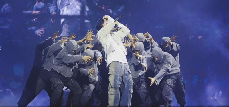 When Yoongi was not alone on stage, he was surrounded by dancers who clawed at him, bore him, abandoned him and very rarely, also danced with him. In their role too, there was commentary on a multitude beyond Korea and its impression on an artist.