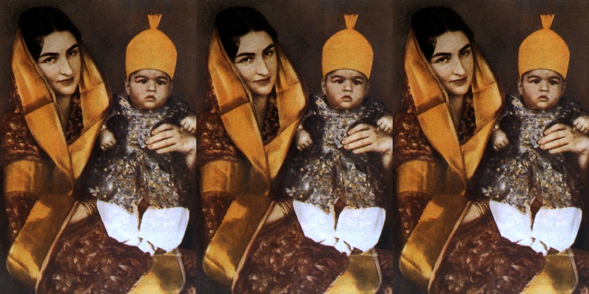 The first official photo of Mukarram Jah, with his mother Durrushevar. Photo: Hyderabad state, Public domain, via Wikimedia Commons