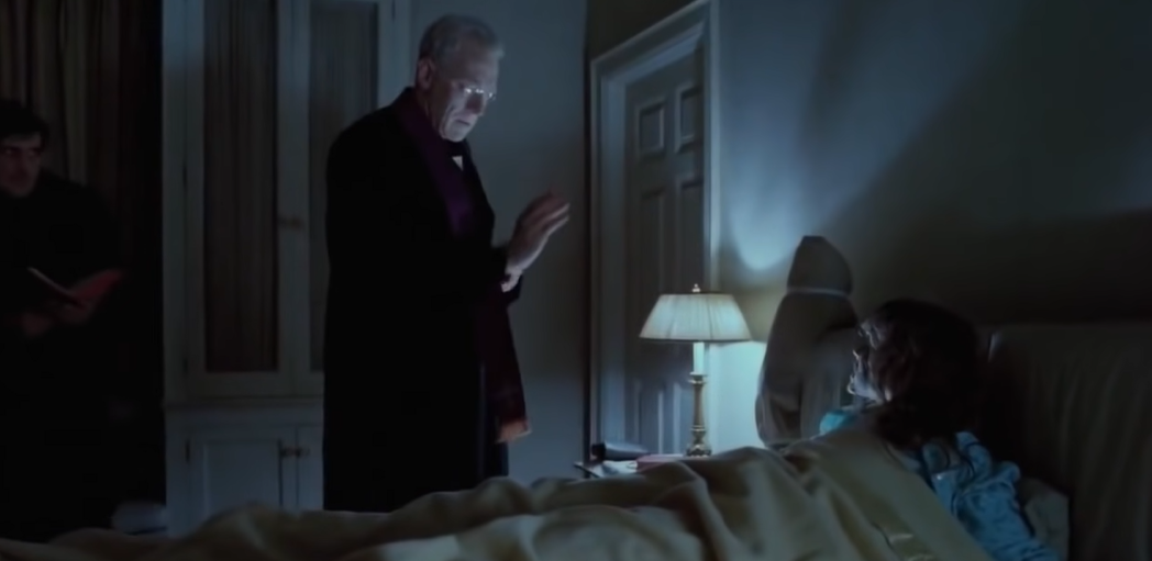 Swedish-born actor Max Von Sydow blesses actress Linda Blair as she lies in a possessed state in the film ‘The Exorcist'. Photo: YouTube