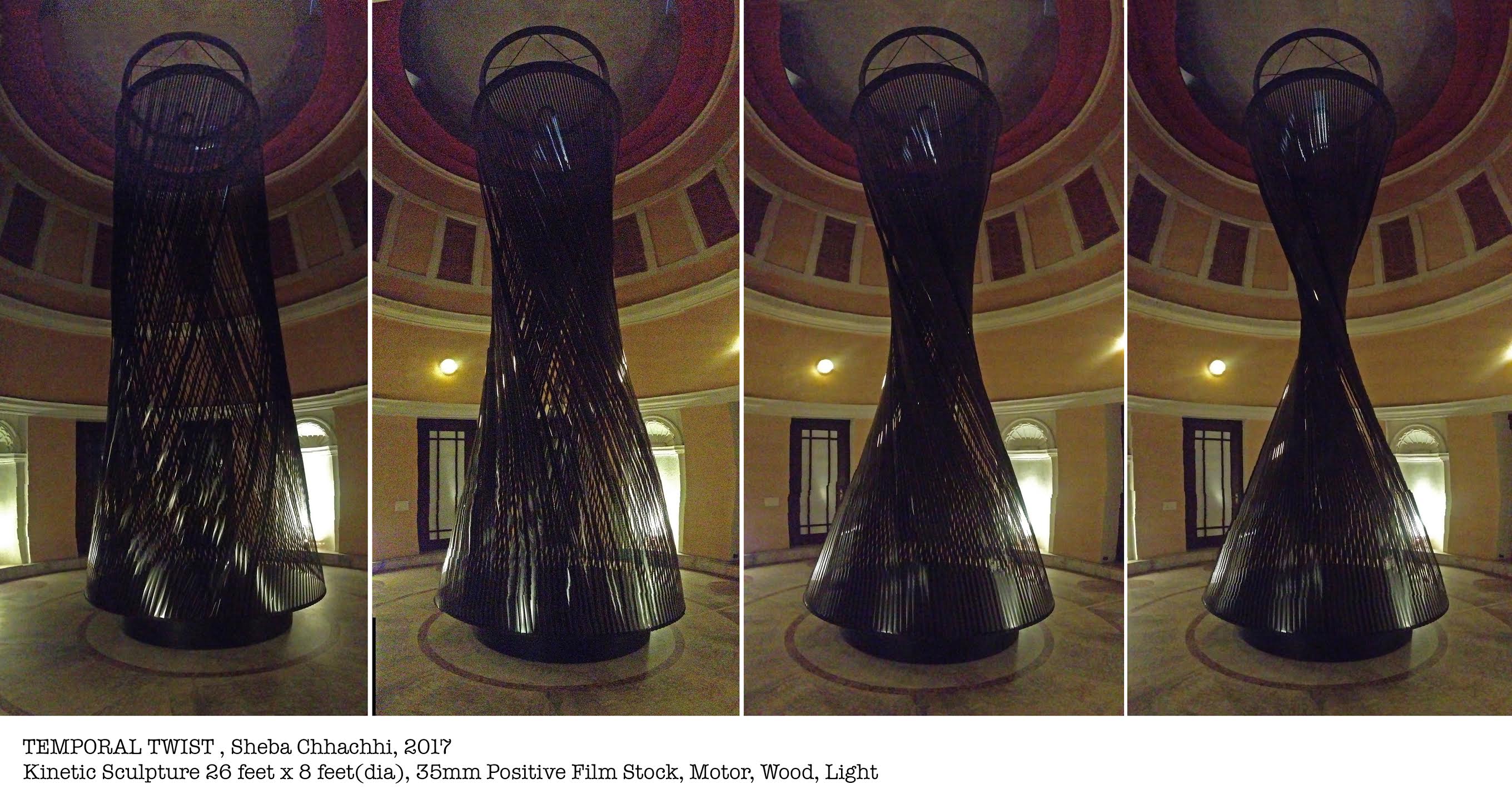 The most striking installation for me was ‘Temporal Twist’ by Sheba Chhachhi. A mammoth piece of art, going up all the way from the floor to the ceiling were ribbons of film, each a specific moment in time, a memory, rotating slowly, painfully in the shape of an hour-glass. It embodied perfectly the warping of memory over time as each strip of film twisted into a slightly different shape with each turn of the hourglass.