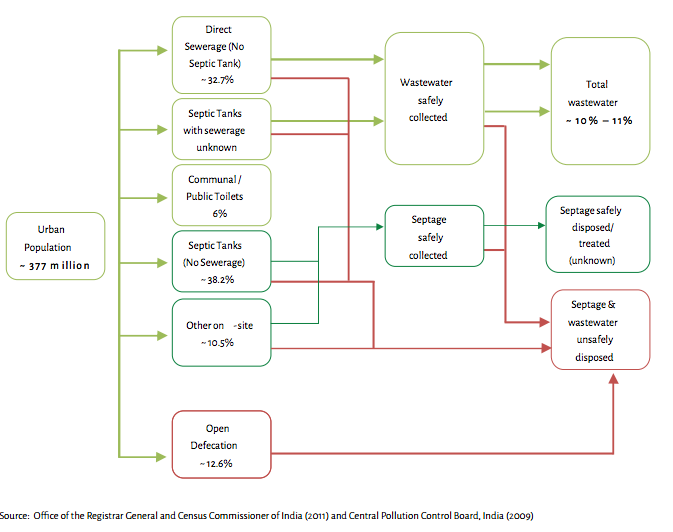 Outline wastewater flow diagram for all census urban areas in India. Credit: Faecal Waste Management in Smaller Cities across South Asia: Getting Right the Policy and Practice