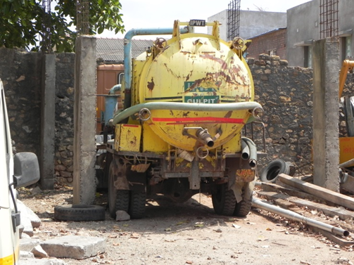 A fabricated sludge transport vehicle in India today. Credit: Faecal Waste Management in Smaller Cities across South Asia: Getting Right the Policy and Practice