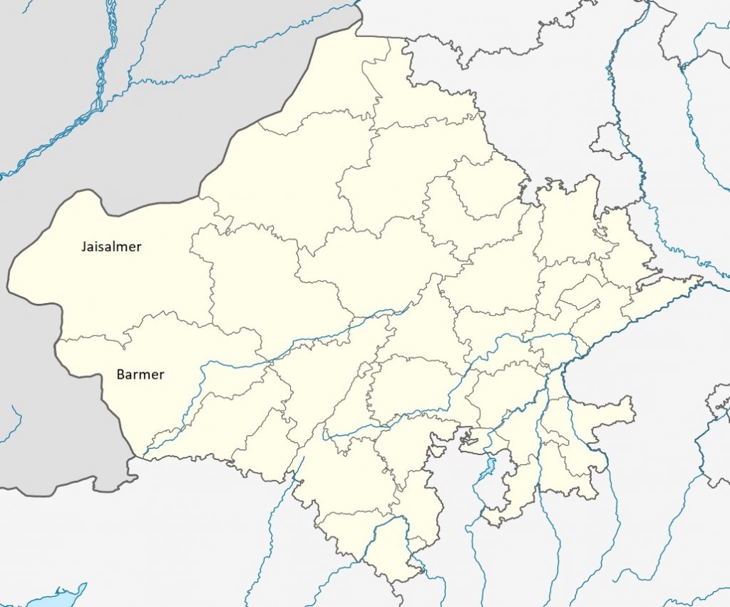 Map showing the border districts of Jaisalmer and Barmer. Photo: Wikimedia Commons/Milenioscuro CC BY-SA 3.0,