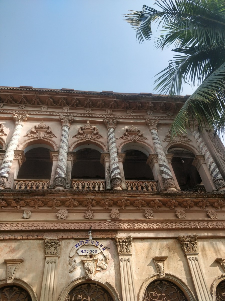 Panam Nagar, once an important trading centre for textiles like muslin, is a 600 metres long road that housed the wealthy merchant homes, totalling 52 in number. The townhouses are Indo-Saracenic in design with influences of European architecture. The whole area contains of a well laid out central road, large ponds circled by brick walls as well as the stunningly beautiful houses made of local bricks but with decorations of iron beams, marbles, arches, columns, balconies and friezes. The brick and mortar used were mostly local, but some of the wrought iron railings may have been imported from elsewhere, possibly from Kolkata or even further afield. Most of the houses are one to three-storey high and some are named such as Kashinath Bhavan built in the Bengali year 1305 (1899).
