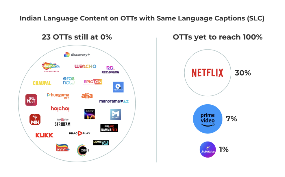 Chart 1: Indian language content on OTTs with Same Language Captions (SLC)