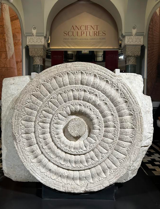 On entering the imposing Indo-Saracenic building of the CSMVS, a stone lotus medallion, a fragment from the great Amravati stupa, is placed at the museum entrance to greet visitors.