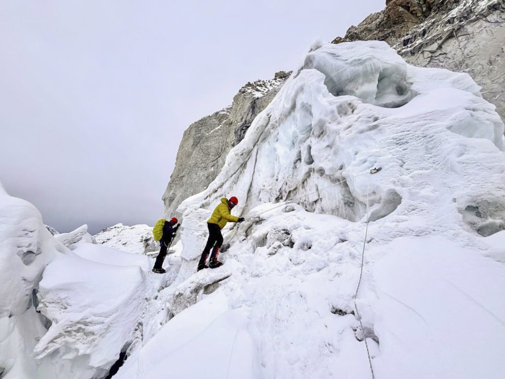 In this image released by @adgpi via X on May 19, 2025, a team of Indian Army and Nepali Army personnel climbs Kanchenjunga mountain. (@adgpi via PTI Photo) Photo: PTI