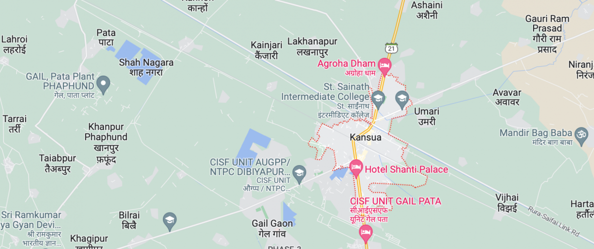 Dibiyapur (outlined in pink) in Auraiya district of Uttar Pradesh. Photo: Screengrab via Google Maps