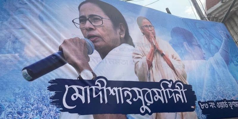 It had an image of Banerjee with folded hands and described her as "ModiShahsurmadini." The word is an amalgamation of (Prime Minister Narendra) Modi, (Union home minister Amit) Shah and the mahishasurmardini, the epithet for the deity Durga which translates to 'one who slays the demon Mahishahsur'.