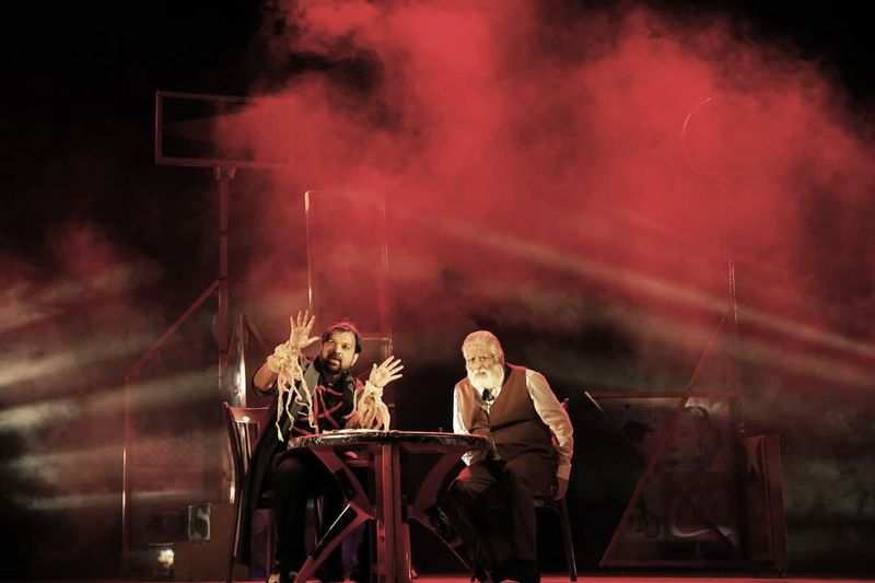 Jayant Kripalani as Marx and Srijit Mukherji as Mephistopheles in ‘’Marx in Kolkata’. Photo: Sandip Kumar