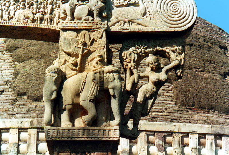 The famous Salabhanjika, or tree goddess, on the east gate at Sanchi stupa. Credit: Wikimedia Commons