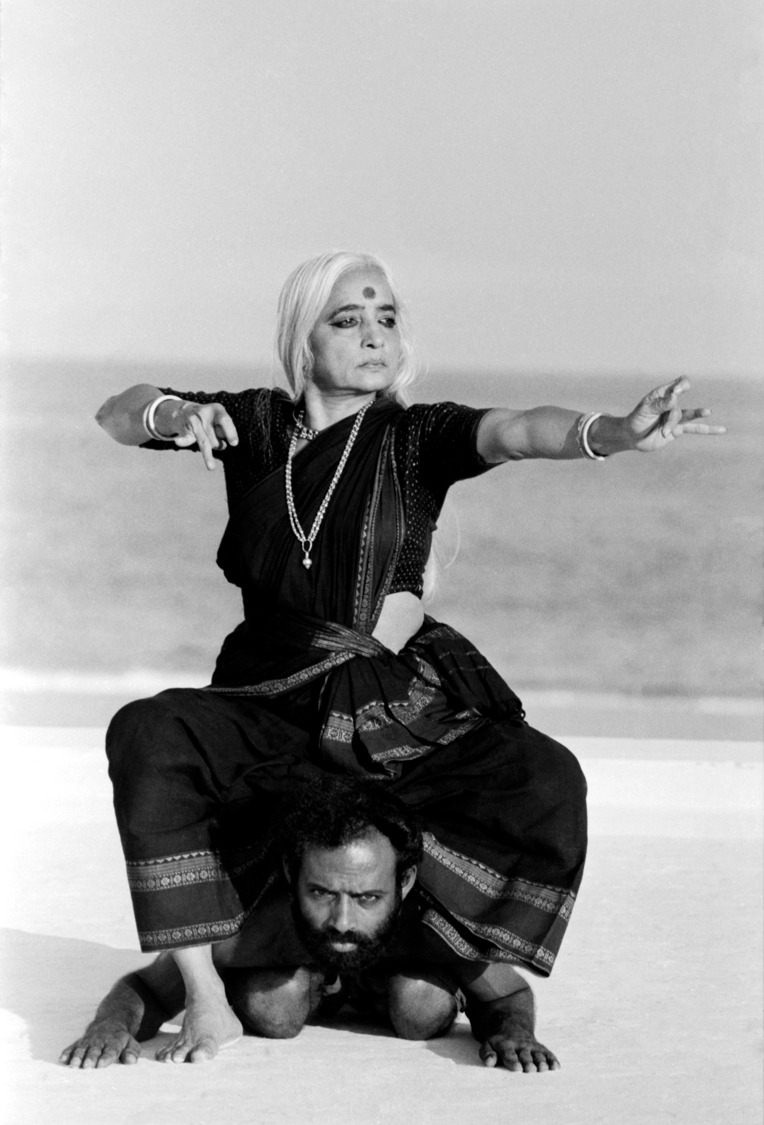 Chandralekha in the 'Naravahana' sequence from her path-breaking 1985 production 'ANGIKA'. Photo credit: Sadanand Menon, Courtesy: The Chandralekha Archive, SPACES, Chennai