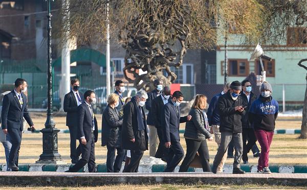 A delegation of 24 foreign ambassadors on Srinagar visit. Photo: PTI