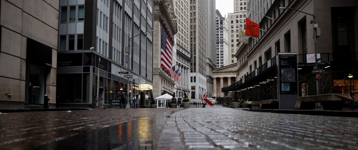 A view of a nearly deserted Broad street and the New York Stock Exchange building in the financial district of lower Manhattan during the outbreak of the coronavirus disease (COVID-19) in New York City, New York, U.S., April 3, 2020. Photo: Reuters/Mike Segar