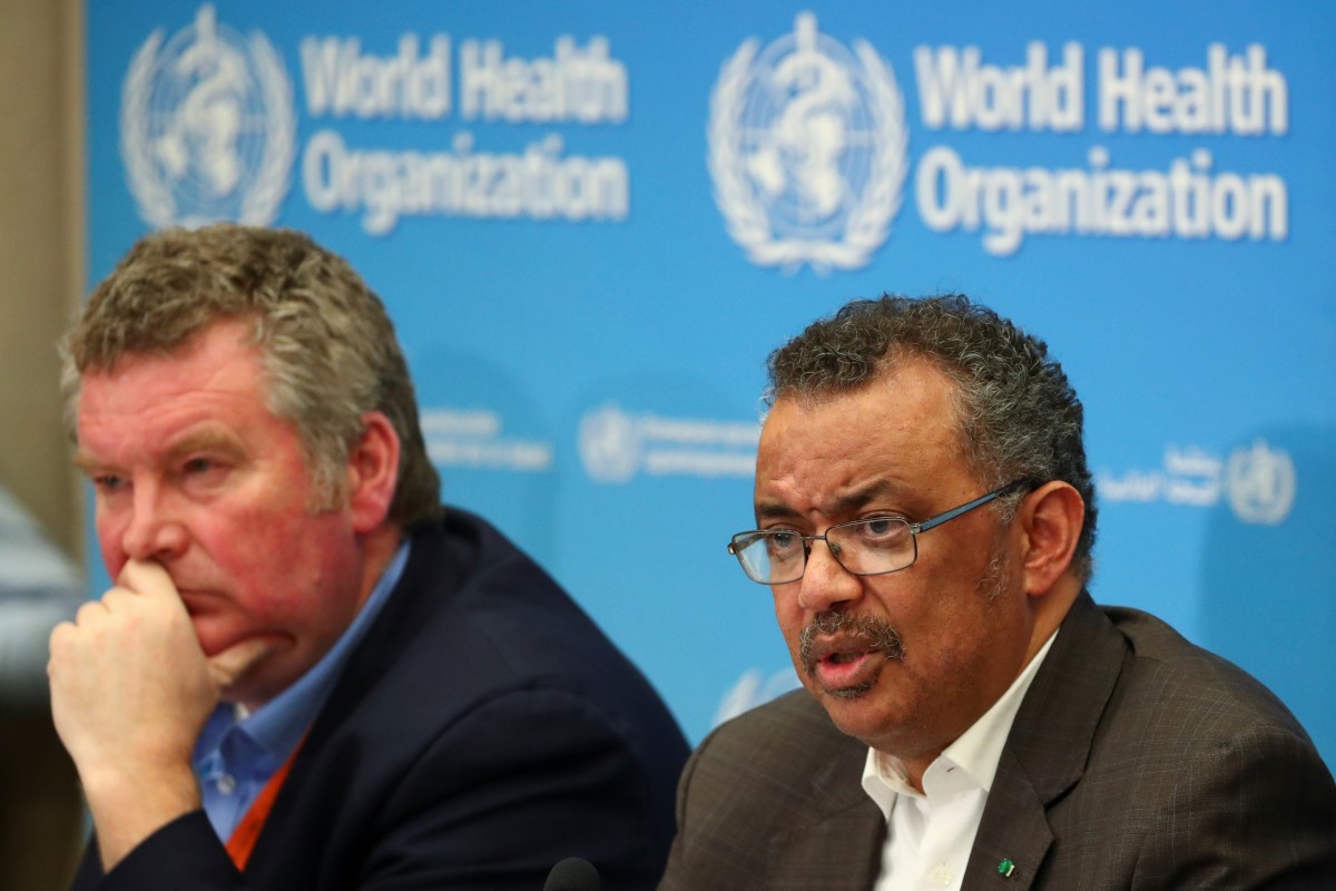 Director-General of the World Health Organization (WHO) Tedros Adhanom Ghebreyesus speaks next to Michael J. Ryan, Executive Director of the World Health Organization (WHO) Health Emergencies Programme during a news conference after a meeting of the Emergency Committee on the novel coronavirus (2019-nCoV) in Geneva, Switzerland January 30, 2020. Photo: Reuters/Denis Balibouse