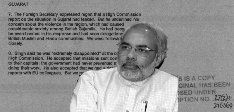 The hitherto classified, publicly unseen British foreign office record of the conversation was obtained through a Freedom of Information Act request in Britain (which corresponds to securing information via India’s RTI Act). Sections of the document were redacted by the foreign office before release but the Gujarat-related paragraphs are there in full.