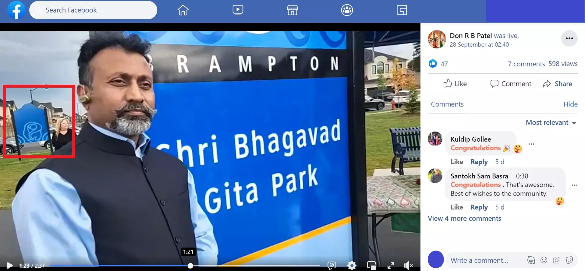 Mayor Brown while retweeting the Peel police tweet, added lines from a statement from the Community Services and Communications department of Brampton stating, "...on the confusion over resident complaints about Gita Park sign. We learned that the sign was damaged during the original install & a city staff member brought it back for unplanned maintenance and to reprint." In another tweet, he added, "The blank sign was left up during repairs. This is not usual process as we never remove a sign unless damaged or its name changes."