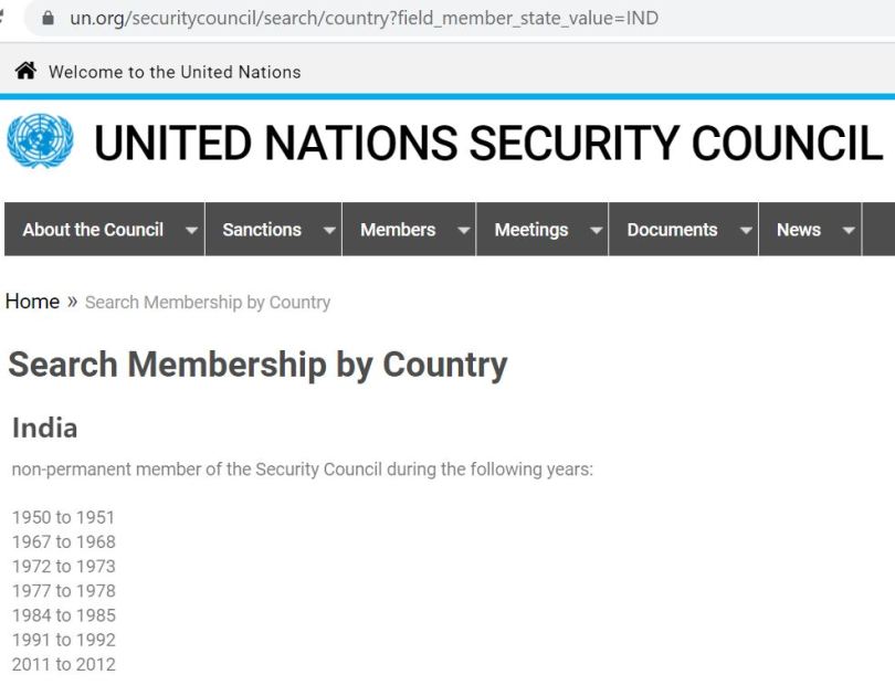 India first presided over the UN Security Council in 1950. Since then, it has been a non-permanent member of the council for several terms.