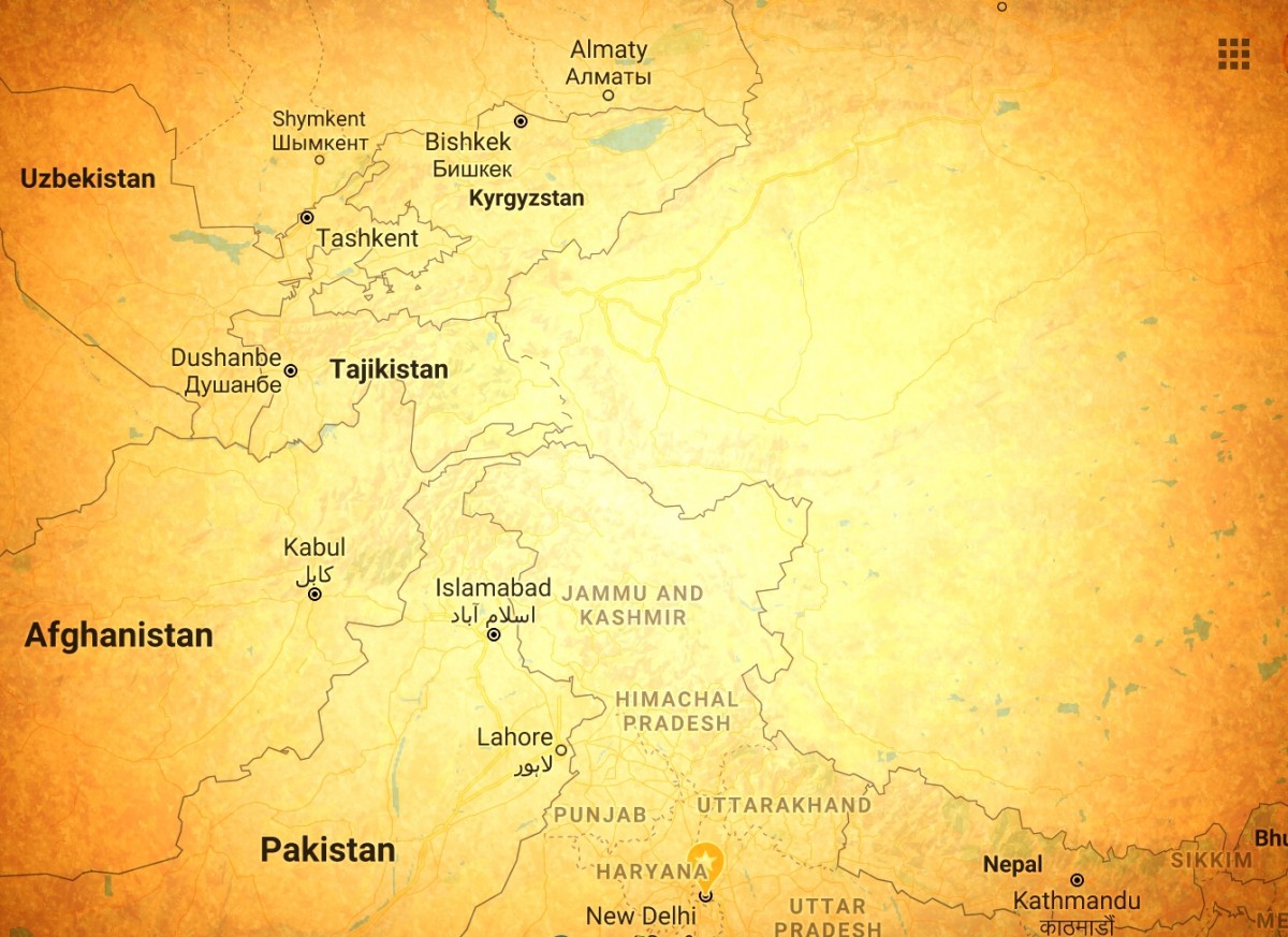Map of India and Central Asia. Credit: Google