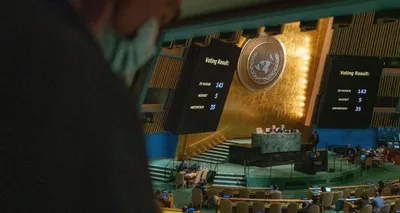 The resolution was adopted with 143 votes in favour and five against, including Russia. India, China and 33 other countries abstained while 10 countries, including Iran, did not cast any vote.