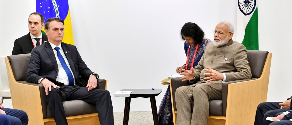 Brazillian President Jair Bolsonaro and Indian Prime Minister Narendra Modi at the G20 Osaka summit. Photo: MEAIndia/India