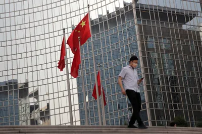 The Chinese national flag flies outside a hotel in central Beijing, China May 15, 2019. Photo: Reuters/Thomas Peter/Files