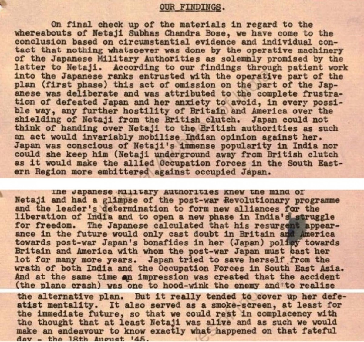 2. The then-defunct Indian Independence League’s (IIL) seven-year-long investigation based on circumstantial evidence and individual contacts (published in 1953) revealed that the aircraft crash in which Bose had lost his life had not been an accident but an act of sabotage.