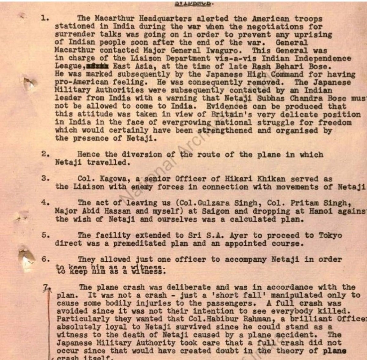 From the two files released, we found a detailed investigative report describing the plane crash, the subsequent death of Netaji and the handing over of Netaji’s remains and the INA’s treasures in Tokyo.