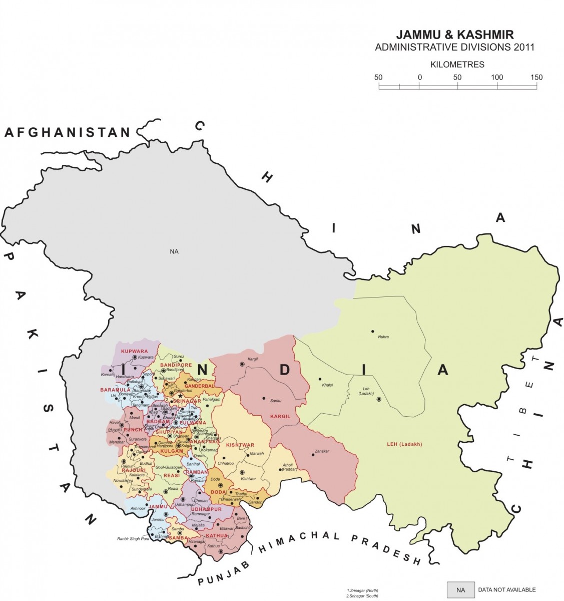 District map of the former Indian state of Jammu and Kashmir. As may be seen, Ladakh comprises just Leh and Kargil districts. Map: Census of India, 2011