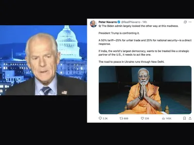 "President Trump’s 50% tariffs on Indian imports are now in effect. This isn’t just about India’s unfair trade – it’s about cutting off the financial lifeline India has extended to Putin’s war machine," wrote Navarro as he began the nine-part thread. The tweets begin with an AI-generated image of Trump holding up a placard saying '50% tariffs on India' and end with an image of prime minister Narendra Modi meditating.