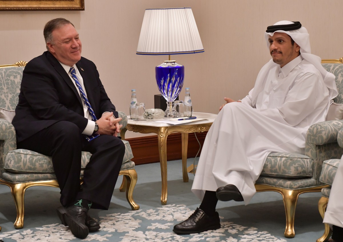 Qatari Deputy Prime Minister and Minister of Foreign Affairs Sheikh Mohammed bin Abdulrahman al-Thani meets with US Secretary of State Mike Pompeo. Photo: Giuseppe Cacace/Pool via Reuters