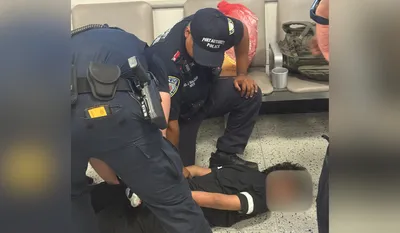 Among those restraining the man were seen wearing gear labelled as that of the police department of the Port Authority of New York and New Jersey, which runs airports, seaports, bridges and tunnels that connect the two states.