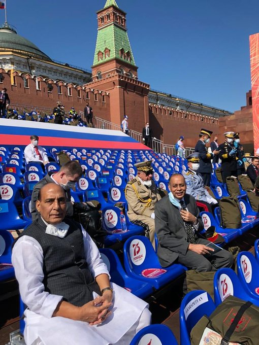 Rajnath Singh attends Victory Day Parade at Red Square in Moscow. Photo: Twitter/@rajnathsingh