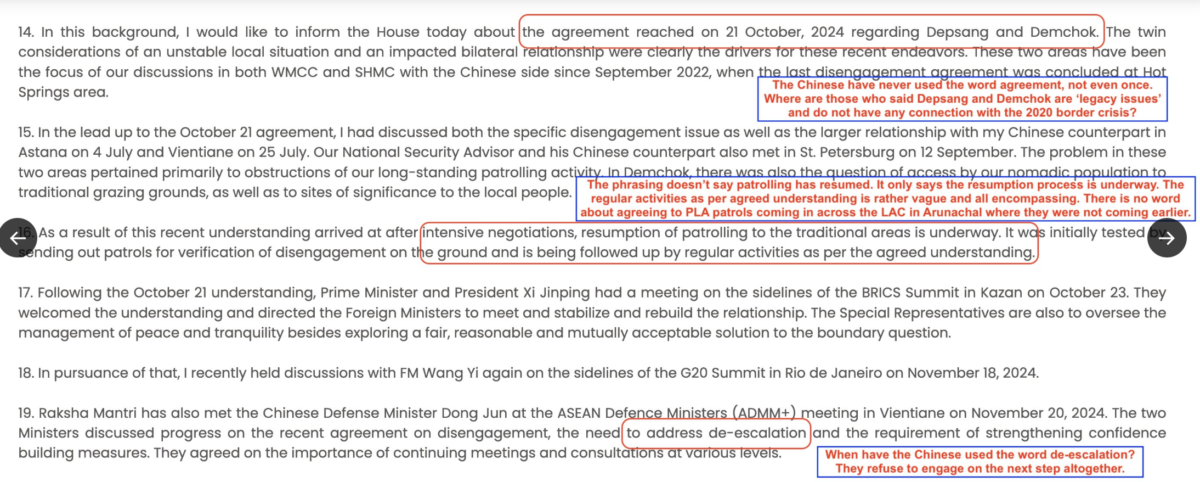 It is wrong to call it an "agreement" since the Chinese have never used the word agreement, not even once. Where are those who said Depsang and Demchok are 'legacy issues' and do not have any connection with the 2020 border crisis?