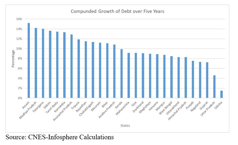 As observed for Assam, increasing debt has been driven by loans for development projects, sourced from financial institutions and the Central government.