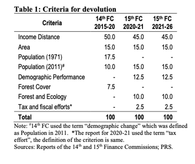 The criteria for the distribution of central taxes among states for the 2021-26 period is the same as that for 2020-21. However, the reference period for computing criteria like income distance and tax efforts are different (2015-18 for 2020-21 and 2016-19 for 2021-26), hence, the individual share of states may still change.