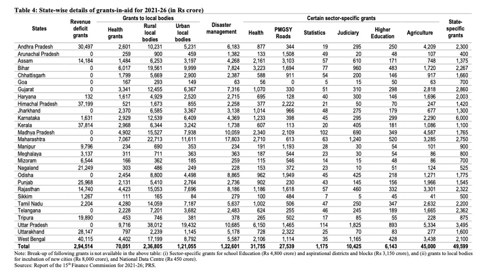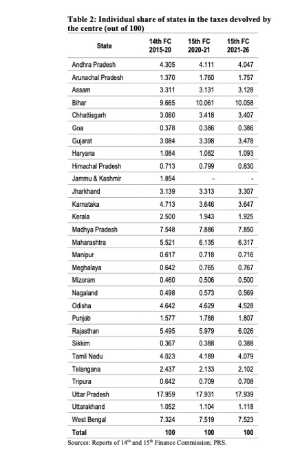 The share of states in the central taxes for the 2021-26 period was recommended to be 41%, the same as that for 2020- 21. This is less than the 42% share recommended by the 14th Finance Commission for the 2015-20 period.