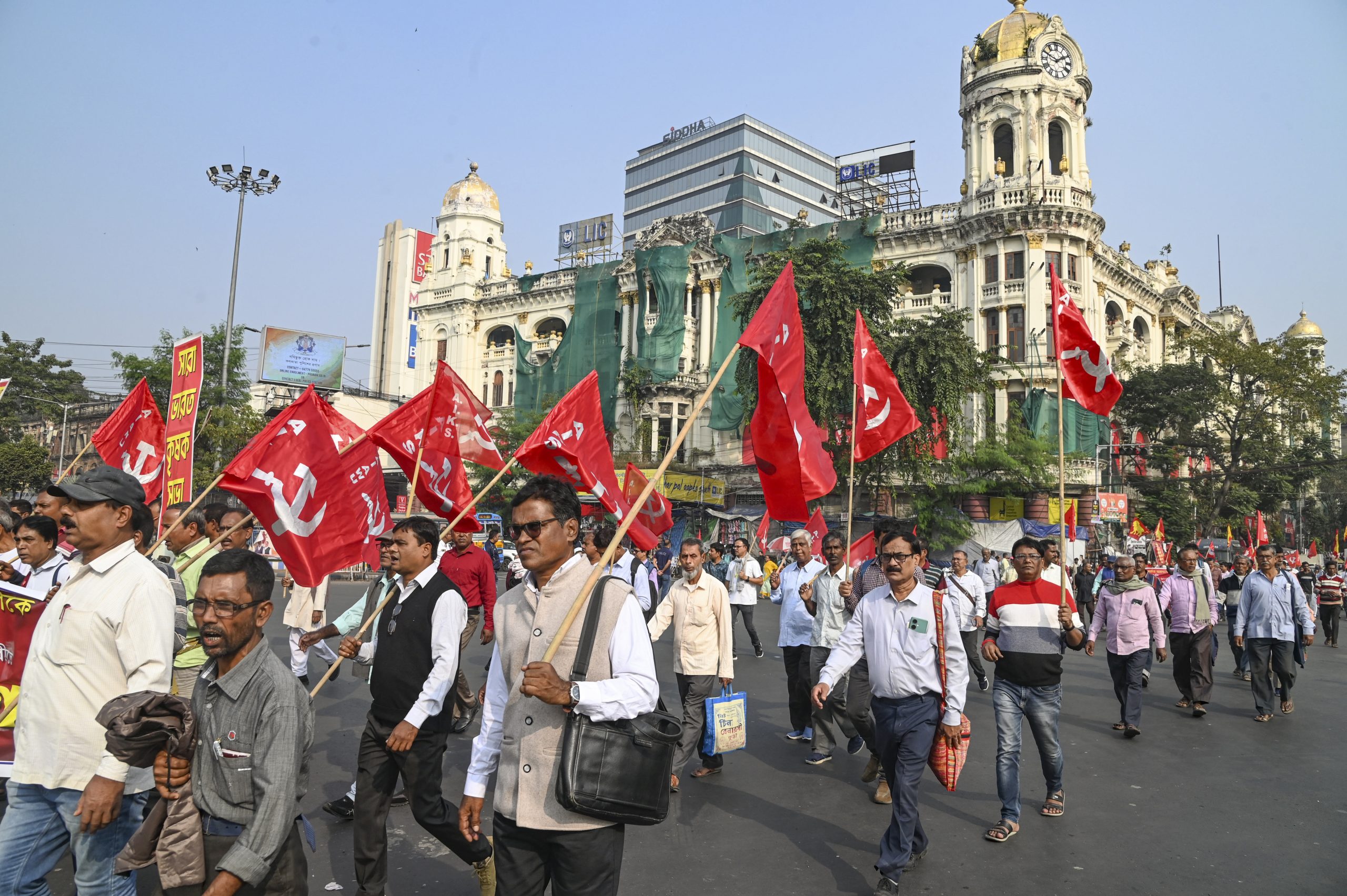 Members of Left organisations protest against the new labour codes in Kolkata, West Bengal. November 2025. Photo: PTI