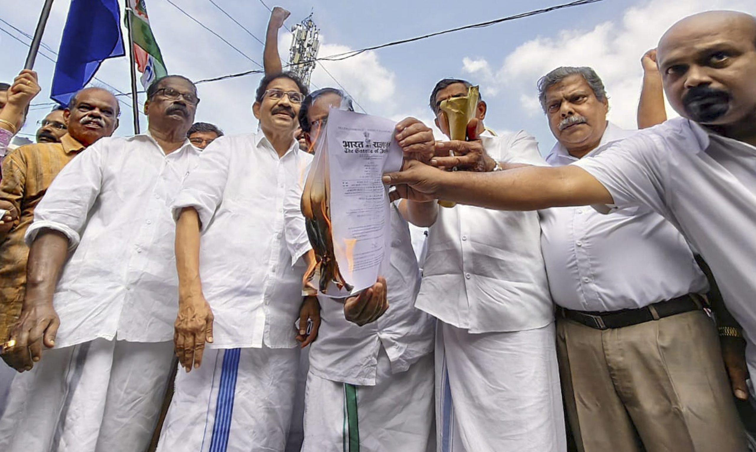 Opposition party leaders in Kerala protest the new labout codes, Kozhikode. November 2025. Photo: PTI