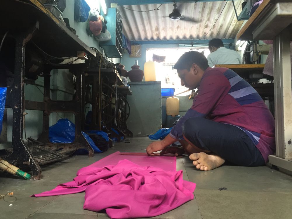 Right alongside Abdullah’s workshop, Gopi Shankara, 50, is leisurely smoking a cigarette while sipping cutting chai. Shankara, who produces shirts at a factory and supplies them to several top brands, says he had 35 workers but has let most go, keeping back only ten or so. Production has dwindled from 12,000 pieces a month to 3,000. “We cannot afford to pay the workers while we struggle to look after our families,” explains Shankara. “I have two teenaged kids. I am responsible for their education. Several employers have sent their workers back. If you had visited last year, you would not have been able to hear me. The noise of machines would have echoed around us.”