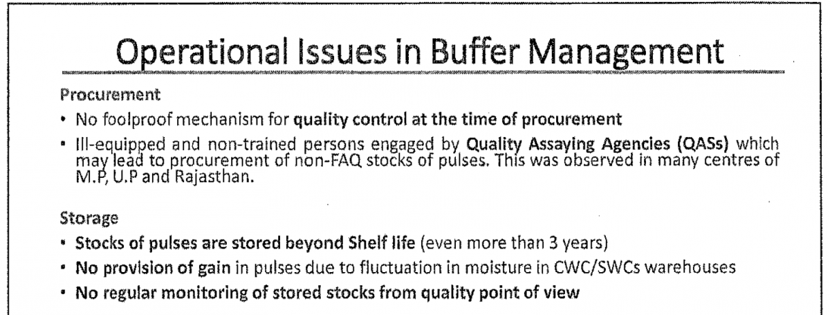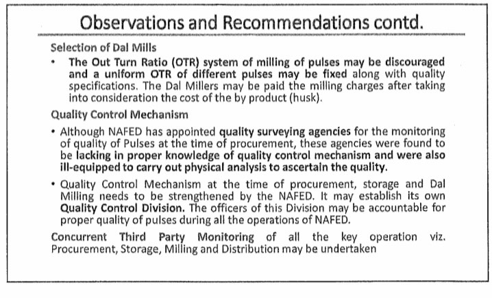 NPC clearly pointed out that quality checks were lacking in the procurement and supply of pulses. Source: NPC Presentation accessed via RTI