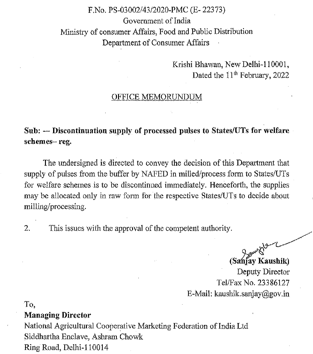 After the Collective’s expose, NAFED has now stopped the milling of pulses for welfare schemes. Instead, the Consumer Affairs Department (DoCA) decided in February this year to distribute only raw pulses, which the states can mill themselves.