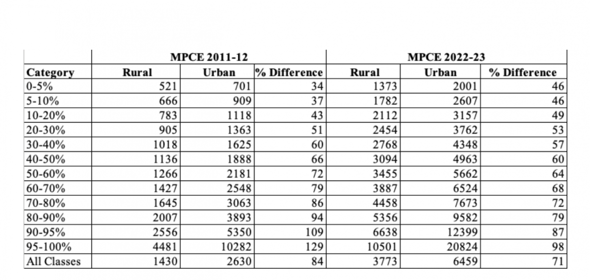 Rural-Urban Inequality in the Households MPCE across Fractile Classes (Source: InfoSphere)