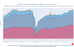 It is important to note that some of these trends could be an outcome of possible confounding effects, and the numbers need to be read with context: on the one hand, for many, healthcare expenditure increased due to Covid-19 related illness, on the other hand, many individuals had to defer non-essential procedures during the pandemic. 2020 was an extraordinary year – lockdowns led to reduced mobility, and the year saw reduced air pollution and fewer accidental deaths. As the pandemic began to recede, while Covid-19 related expenditure could have fallen, expenditure on deferred treatments could have contributed to the increase in healthcare-related expenditure.