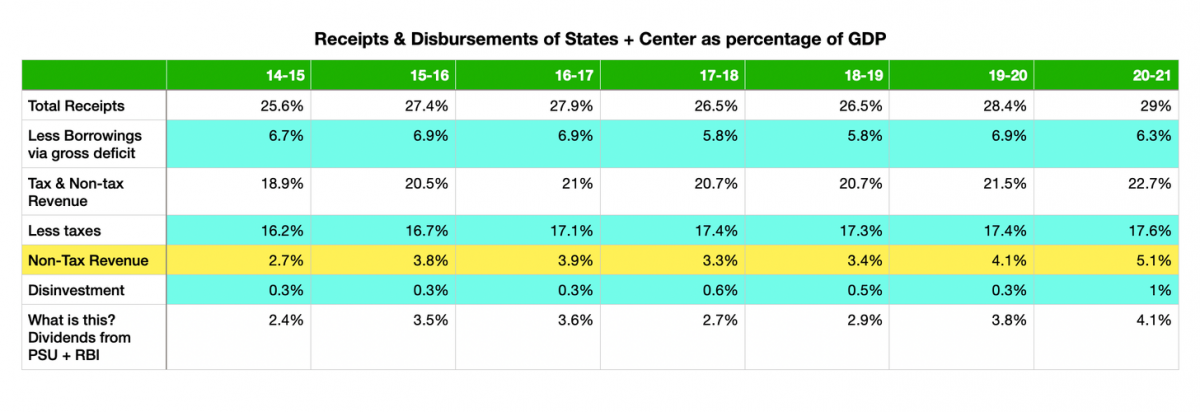 If and when monetisation of assets happen, they will add to the non-tax revenues of the government which are currently 5.1% of GDP, up from 2.7% in 2014-15. They have virtually doubled after 2014, and are testimony to the Modi sarkar’s genius for stealing money from PSUs, with even the RBI reserves not being exempt from such larceny.