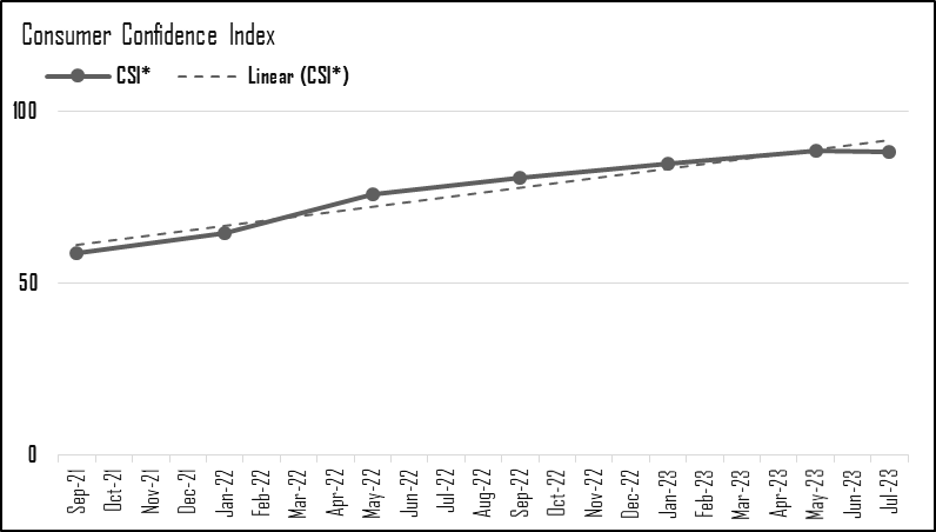 Fig A. Consumer Confidence Index Sep 2021 - Jul 2023. Source: RBI
