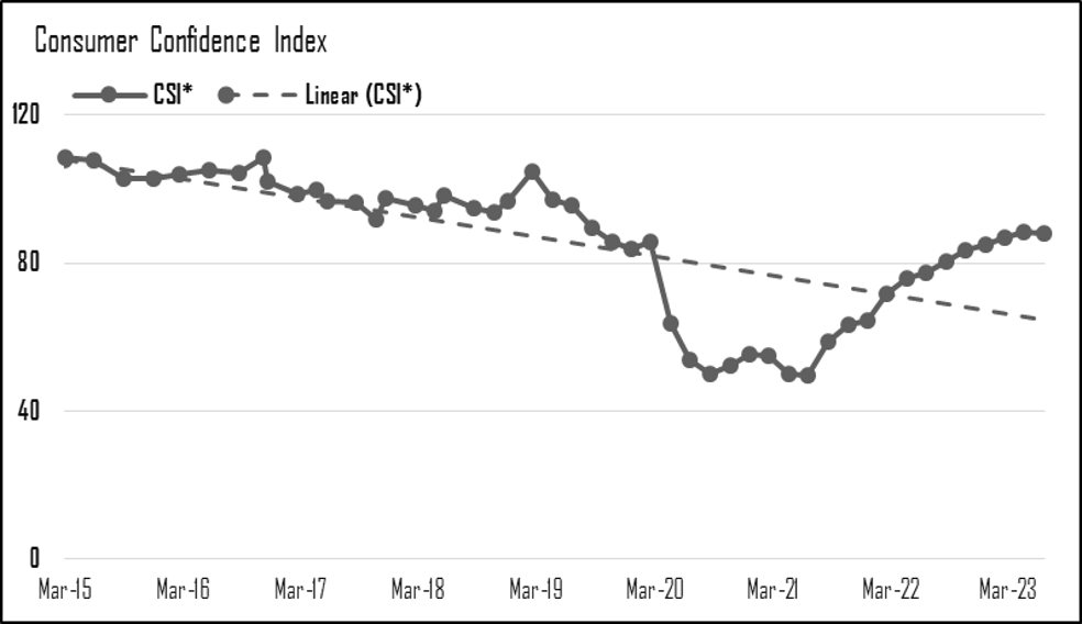 Fig B. Consumer Confidence Index Mar 2015 - Mar 2023. Source: RBI