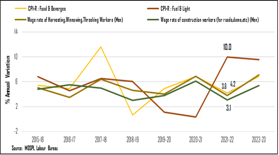 Note: Annual Variation is computed by taking the annual average of months in a FY & annual avg. of monthly wage rate (CPI Base Year : 2012 = 100).
