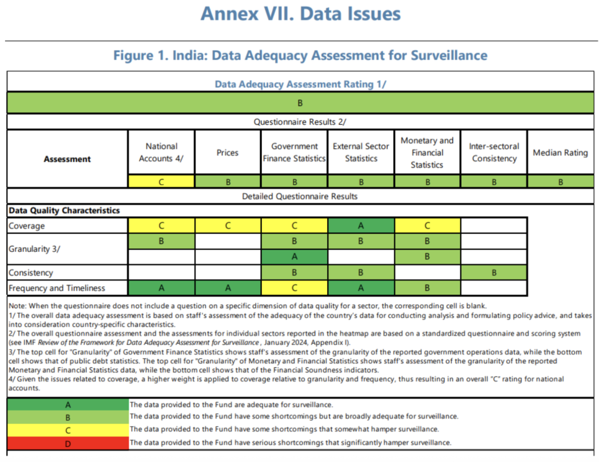 In the recently published 2025 as a part of the Article IV Consultation, the International Monetary Fund (IMF) has given a ‘C Grade’ to India’s national accounts and government finance data infrastructure. Under Article IV of the IMF's articles of agreement, it holds annual bilateral discussions with members to assess their economic health. This is the same grading India received in 2024 also.