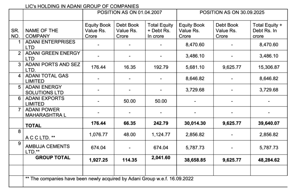 LIC Has Invested Rs 48,284.62 Crore in Adani Group Companies: Government